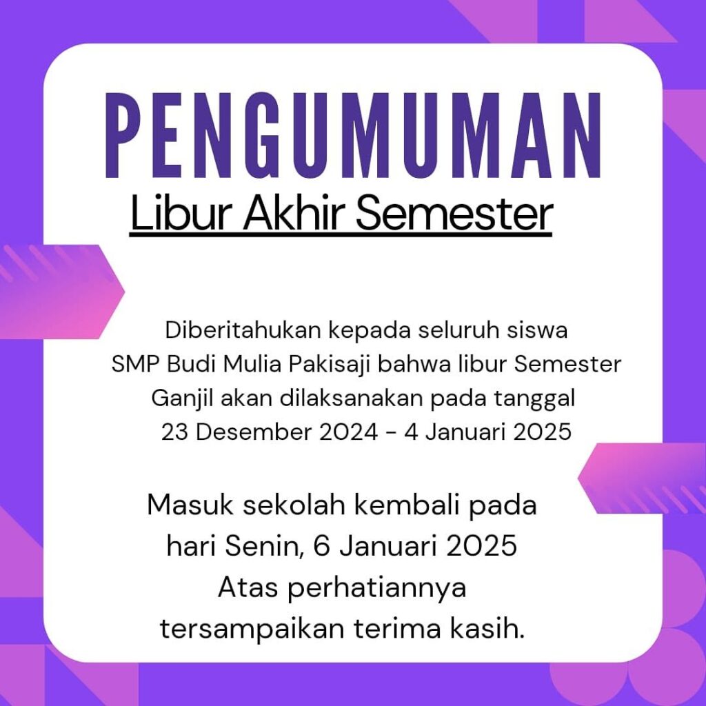 PENGUMUMAN LIBUR AKHIR TAHUN AJARAN 2023/2024